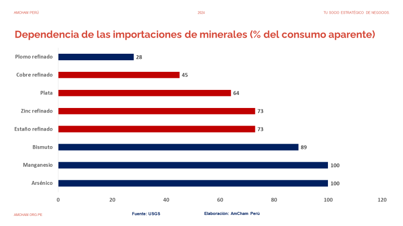 Además, algunos de los minerales que más exportamos ingresarán a la lista de minerales críticos, aquellos que son necesarios para el desarrollo de alta tecnología y que Estados Unidos no produce a gran escala actualmente. La plata, el cobre refinado, zinc y el estaño son parte de la lista actual (Ver gráfico), la cual debería ser publicada en las próximas semanas.